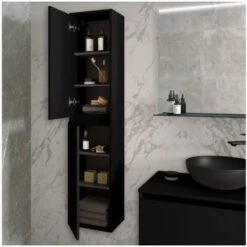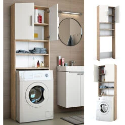 Colonna Bagno Sospesa Rovere Con Un’anta E 7 Ripiani Rovere Chiaro