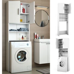 Colonna Bagno Sospesa Con 2 Ante Colore Bianco Lucido Bianco
