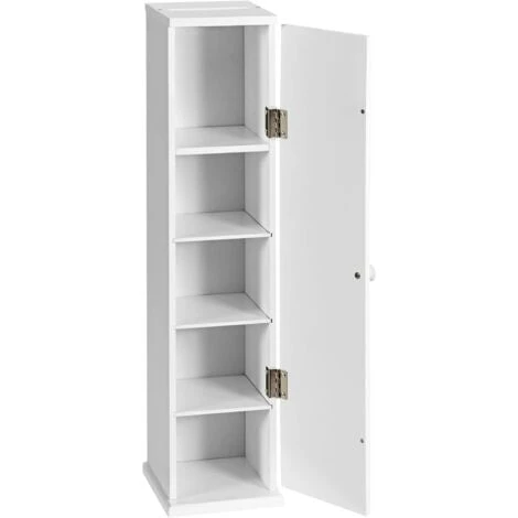 Offre uno stoccaggio pulito e ordinato di vari oggetti piccoli con 4 ripiani rimovibili e unibili in uno e uno scomparto superiore porta carta igienica con fessura sulla sommità. È costruito con i pannelli di qualità che assicurano una grande stabilità e un utilizzo durevole. Ha uno stile sobrio ed elegante che è compatibile con tutti gli ambienti.