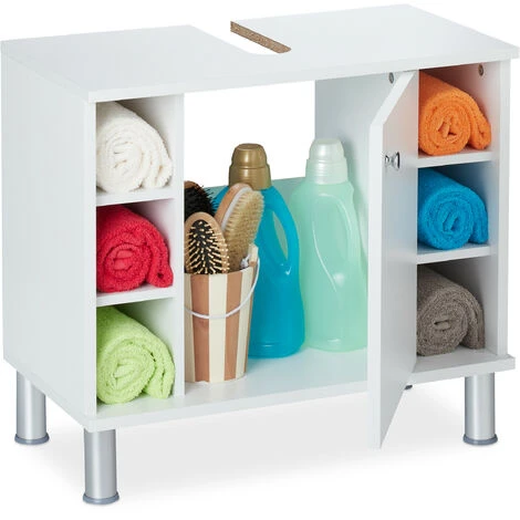 Con il sottolavaboutilizzate finalmente lo spazio libero sotto il lavandino in modo efficiente.Lo spazio ritagliato sul retro del mobile è ideale per far passare il sifonedel lavandino. L’interno del mobile offre spazio a sufficienza per prodotti perla pulizia, asciugamani, carta igienica e la riserva di bagnoschiuma. I 6scomparti aperto sono ideali per riporre piccoli accessori da avere sempre aportata di mano. Il design minimale in bianco si inserisce in ogni tipo diarredo.