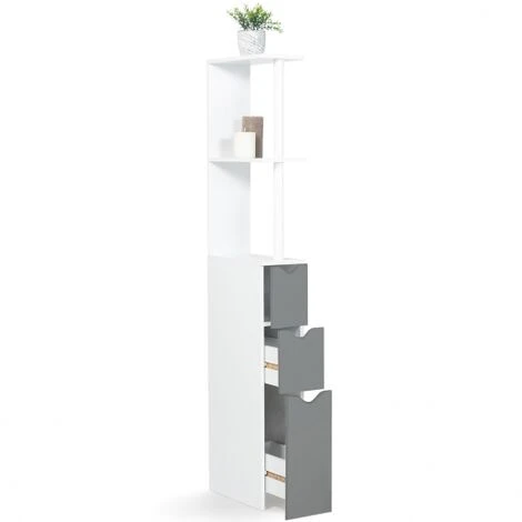 Sistemate gli spazi più piccoli! Questo mobiletto in melamina bianca e grigia è ideale per riporre in modo funzionale il vostro bagno o la vostra toilette e offre un grande potenziale di archiviazione. È alto 136 cm, profondo 33 cm e largo solo 15 cm! I suoi tre ripiani (composti da 2 mensole), l’armadietto e i due ampi cassetti gli conferiscono una grande capacità di stoccaggio.Dimensioni dei 3 scomparti chiusi:Armadio superiore: H.19,5 cm x L. 15 cm x P. 33 cm.Cassetto centrale: H.18,3 cm x L. 15 cm x P. 33 cm.Cassetto inferiore: H.36,5 cm x L. 15 cm x P. 33 cm.3 colori disponibili nel nostro negozio online :BIANCO GRIGIO HETRE