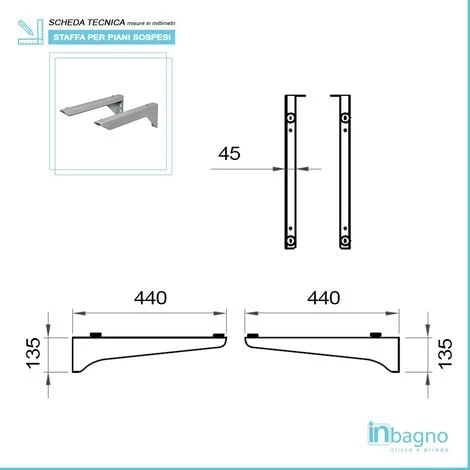 - Tipologia: 2 staffe regolabile per lavabo sospeso