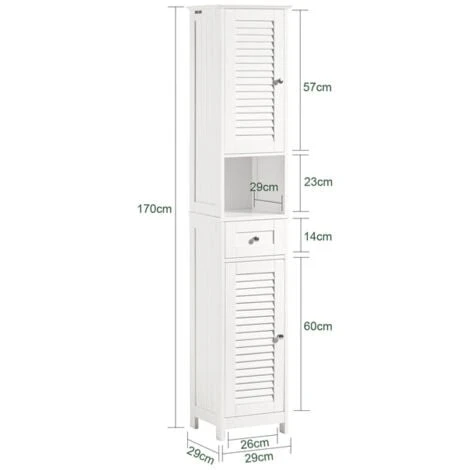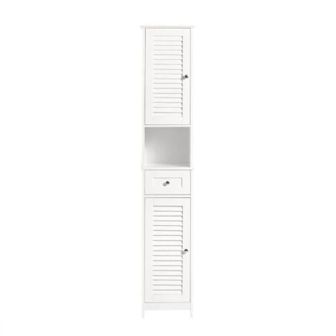 Il due armadio con ante e uno cassetto offrono spazio abbastanza per i tuoi accessori per la bagno