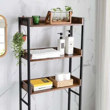 1.C’è sempre spazio da scoprire: Proprio quel vuoto sopra la toilette! Coprilo con questo scaffale sopra water, e renderai utile tutta la metratura aggiungendo un fascino accogliente al bagno grazie al mix di marrone vintage caldo e nero elegante