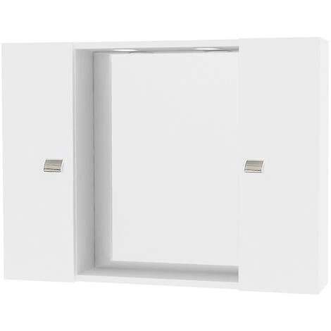 Specchio da bagno 198Led con due ante ed illuminazione led. In legno bianco laccato con maniglie cromate. Dimensioni 77x16x57 cm.