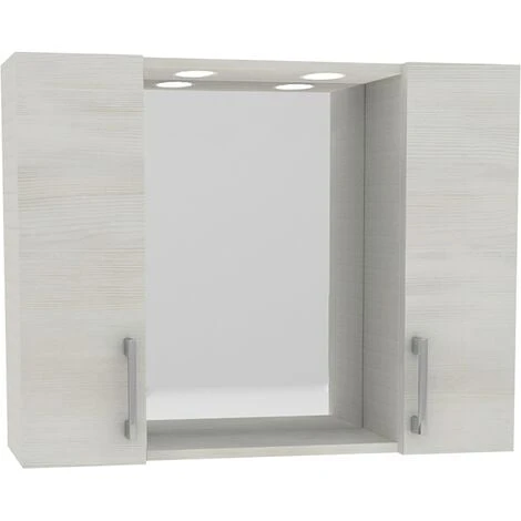 Specchio da bagno 4496LED con due ante in legno e due luci Led, con maniglie cromate Ottimo complemento d’arredo per bagni e lavanderie. Colore rovere bianco. Dimensioni 77x16x56 cm.