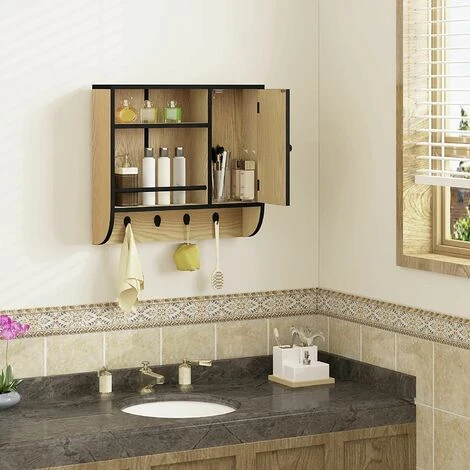 〖STOCCAGGIO SORPRENDENTE〗: 2 scomparti aperti a sinistra possono contenere gli oggetti quotidiani e l&rsquo.armadietto a destra è. dotato di un divisorio regolabile per nascondere gli oggetti personali. 4 ganci possono appendere asciugamani. È. tutto in ordine
